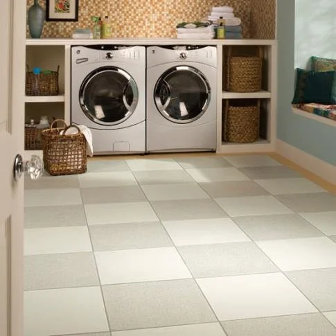 Similar to the windmill, this layout uses a large square tile and a square tile 2 times smaller (ie 12×12 and 6×6). Using two similar coloured tiles like in the photo below, creates a look similar to Modular Versailles but takes less time to install.