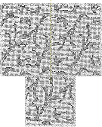 The Brick repeat is not often encountered. If a carpet has a 20”x 20” brick repeat, the length can be found by dropping down 20 inches from the pattern repeat point and moving across the width 10” (half a step forward of the 20 inches wide pattern repeat).