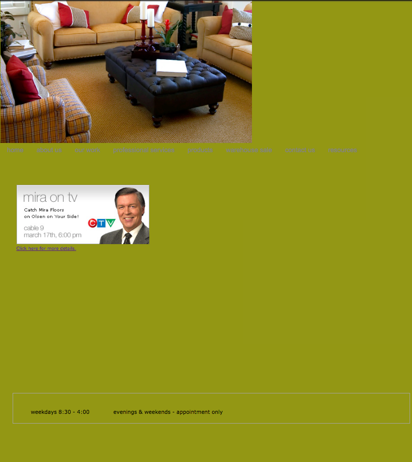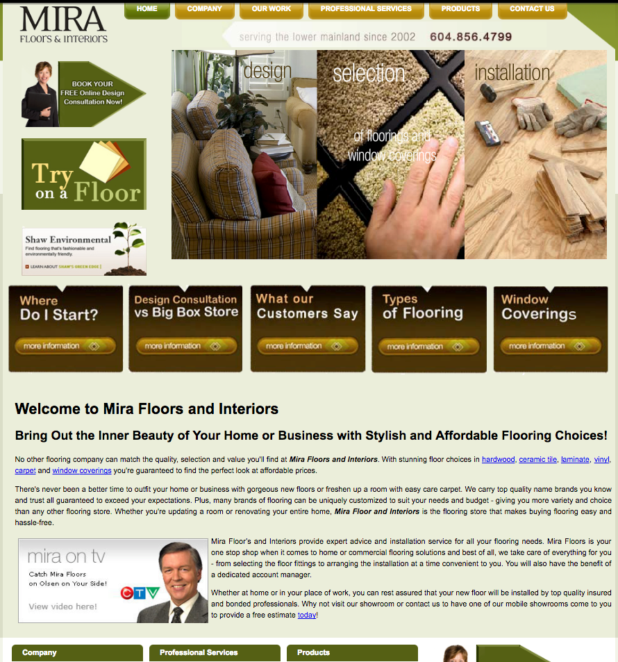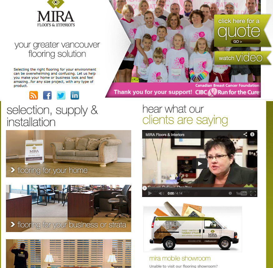 We look forward to building more customer relationships on our website in the near future. Thank you MIRA customers for being a critical component of our online history and success. Thanks to our website developer Circle Graphics & Design for creating the MIRA Floors website.