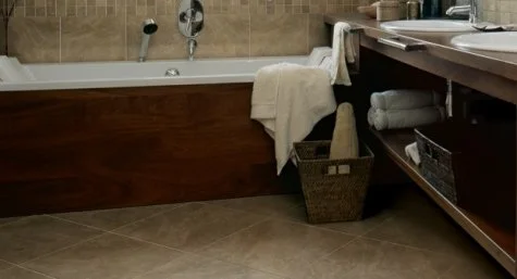 The World Floor Covering Association recommends using larger flooring to make the room look bigger. Whether it is planks, tiles, or patterns, go big. If you tiles are picked, trying laying them on a diagonal to make the room appear even larger. Laying these tiles diagonally creates a longer line for the eye to follow and a big visual impact on this tiny bathroom space.