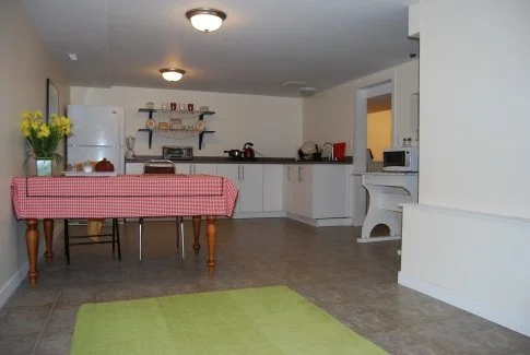 Basement Kitchen after with Armstrong Initiator vinyl installed